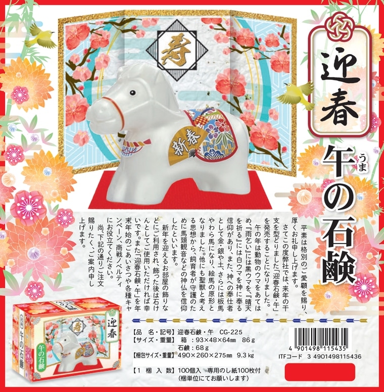 年末年始のご挨拶に。干支石鹸 > 【完売しました】クロバーコーポレーション ノベルティ用 迎春干支石鹸 午(うま) 100個入【取り寄せ商品・即納不可・代引き不可・返品不可】